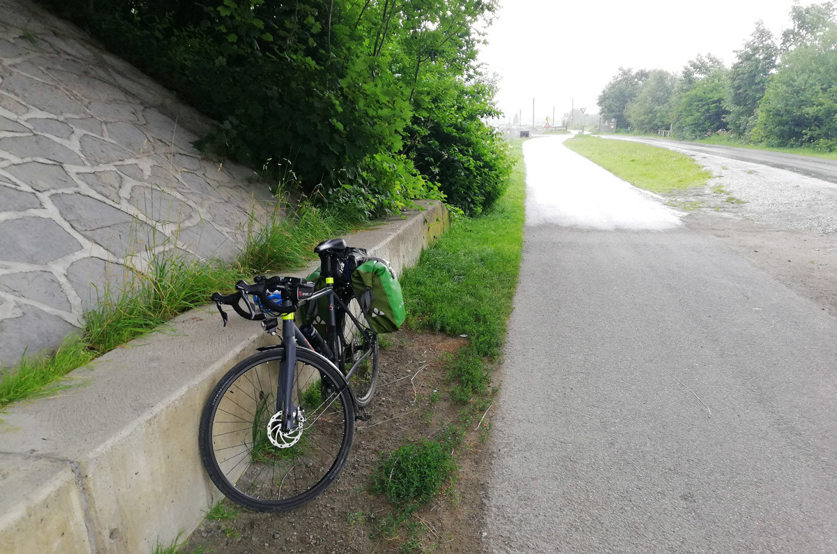 1. gün: Viyana sınırlarını çıkar çıkmaz Tuna Bisiklet Yolu’nda yağmura yakalandım. 6. Temmuz 2018, Muratcan Gümüş.