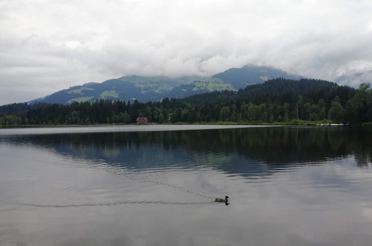 Thurn Geçidi’nde zirvede biraz mola verdikten sonra Kitzbühel istikametinde vadiye indikten sonra, yukarıda da belirttiğim üzere, kullandığım cep telefonu uygulamasının Thurn Geçidi’nde zirveden başlayıp aşağıda vadide, Kitzbühel’de bulunan Schwarzsee Gölü’ne kadar uzanan yaklaşık 20 km’lik bölümü kayıt etmediğini ve o gün katedilen yola hesap edilmediğini tecrübe etmek zorunda kaldım (Bkz. aşağıdaki haritadaki düz çizgi). Buna göre altıncı gün aldığım yolun toplamda 131,5 (=111,5+20) km civarı olması gerekirdi.