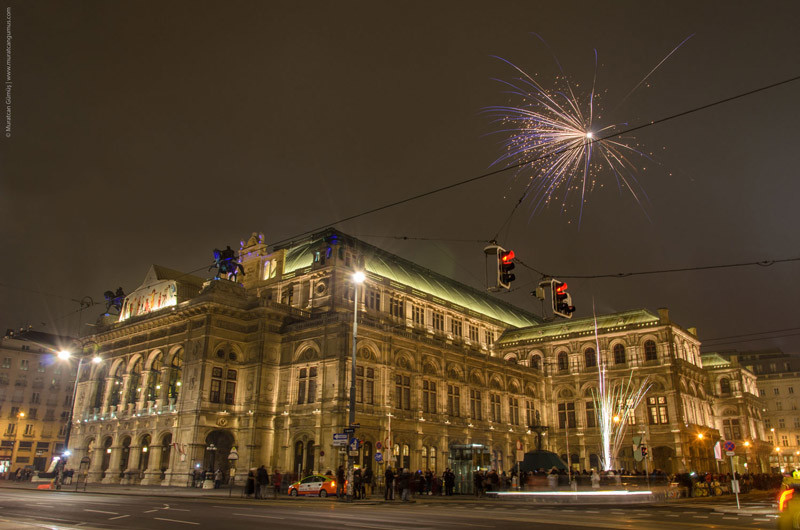 Yılbaşı kutlamaları, 2013/14: Viyana Devlet Opera Binası çevresinde havai fişek gösterileri. Fotoğraf: © Muratcan Gümüş